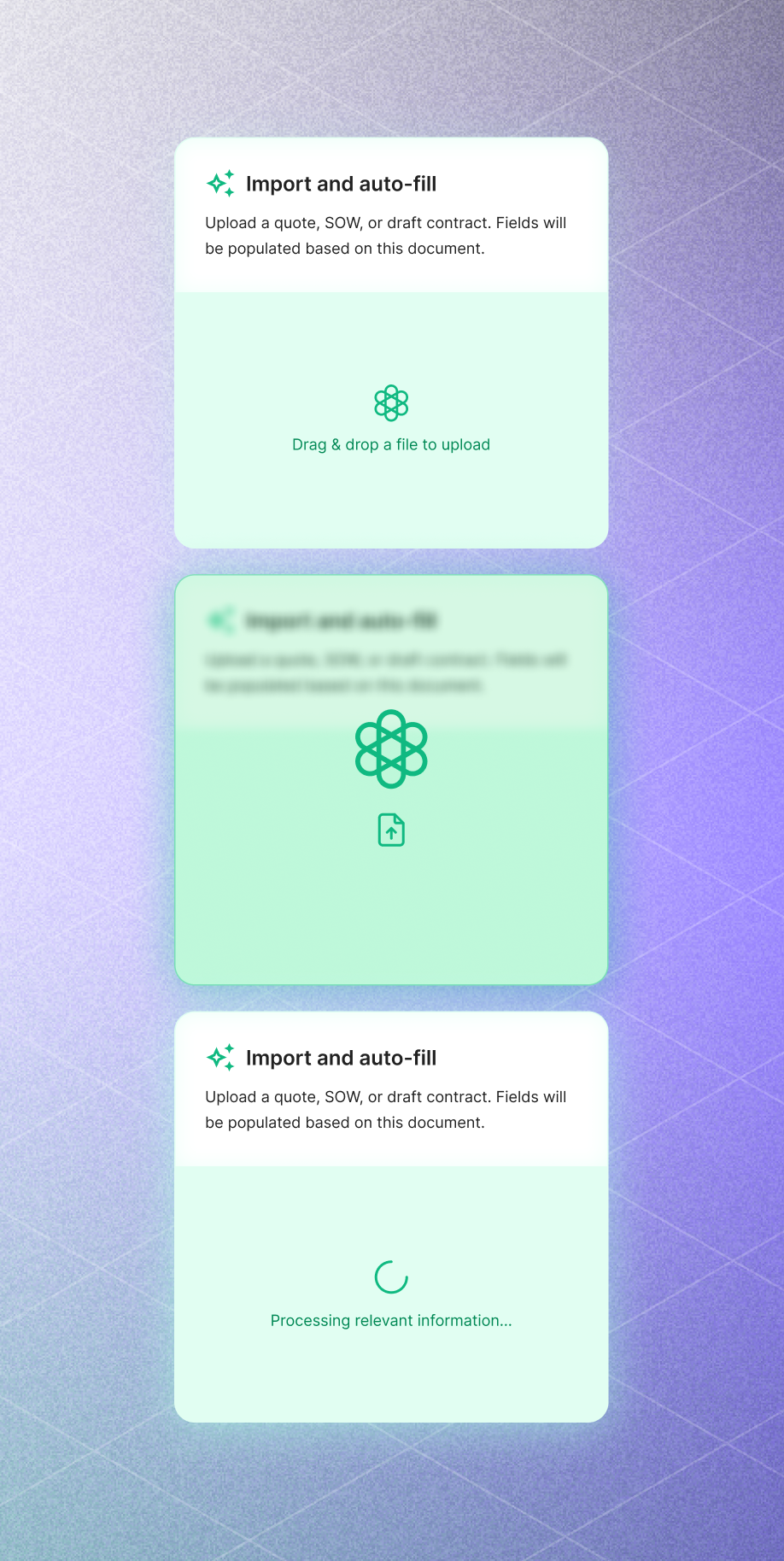 Users were stuck doing heavy manual typing and complex data review. Nathan designed an AI experience to automate these core tasks—building flows where documents auto-fill forms instantly, designing visual markers so users trust the data, and creating smart summaries that rank recommendations to make decision-making easy.