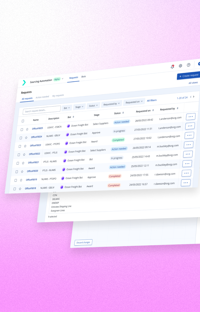 By redesigning Sourcing Automation from a manual service into a self-service product, we reduced the customer onboarding cycle from 12 weeks to just 1 day. The new "No-Code" workflow configurator removed critical engineering bottlenecks, empowering major enterprise clients like Nestlé and Coca-Cola to configure and launch their own complex sourcing bots without writing a single line of code.
